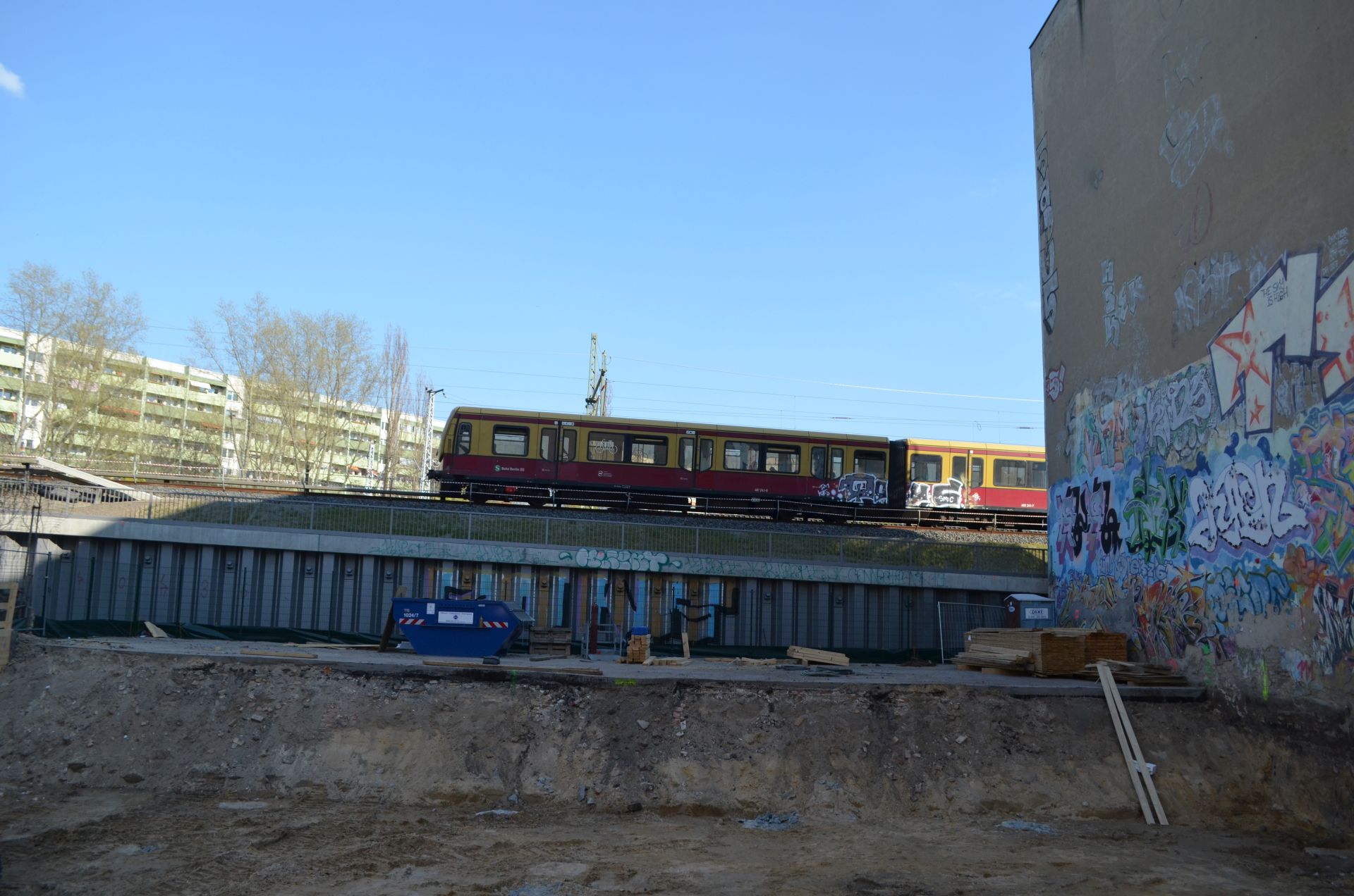 Ähnlich wars beim QOUC Panel auf der Baustelle kurz vorm Ostkreuz. Gloobe da war sojar der Bauzaun offen. Schön die Oldschool Bilder fotografiert und dann kam die Bahn oben lang. Hatte och n Foto, wo das Panel komplett im Schatten war aber ick fand den Hell-Dunkel Unterschied/Kontrast irgendwie geiler…Hustlehorst.